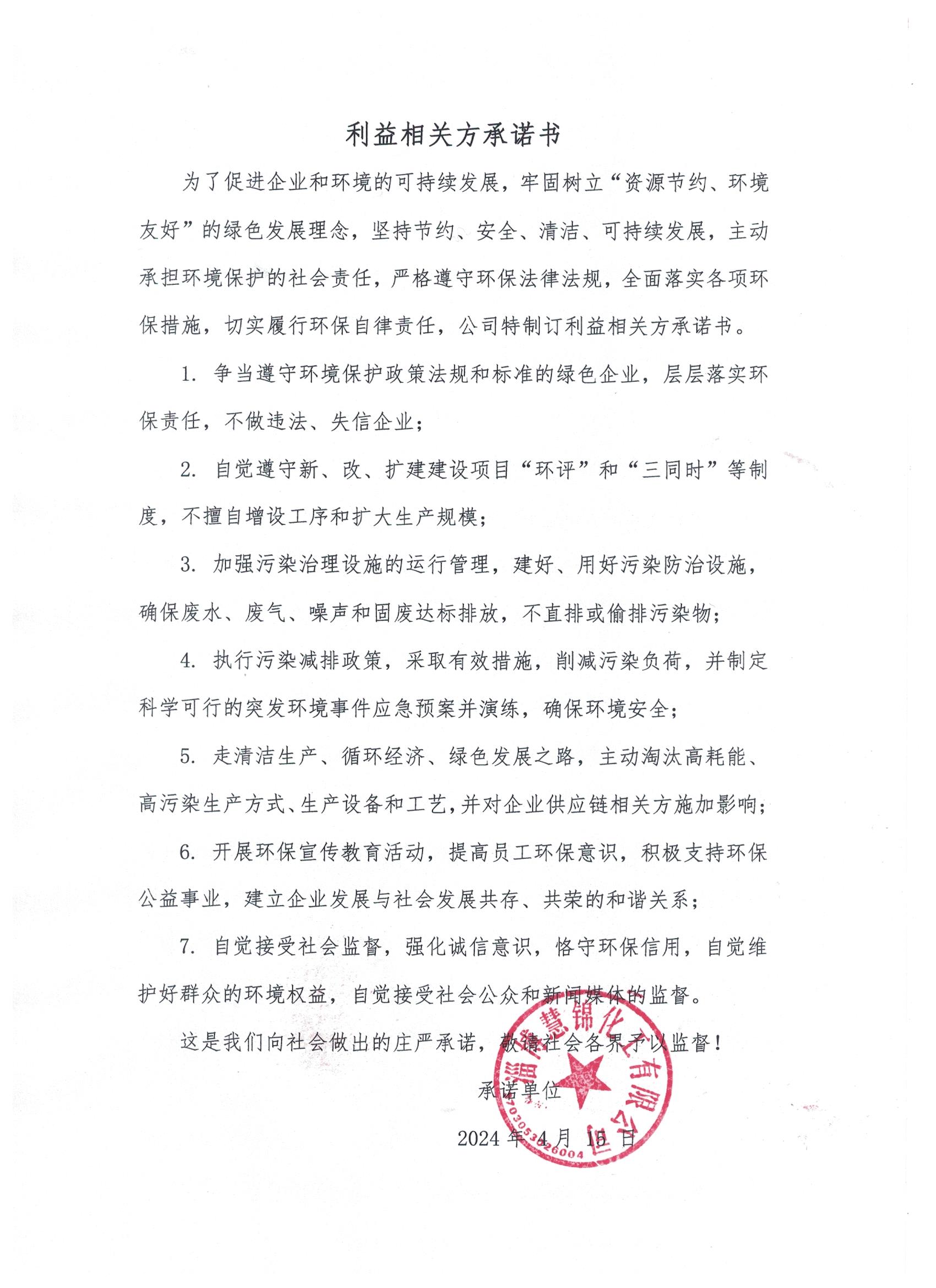 利(lì)益相關方(fāng)承諾書